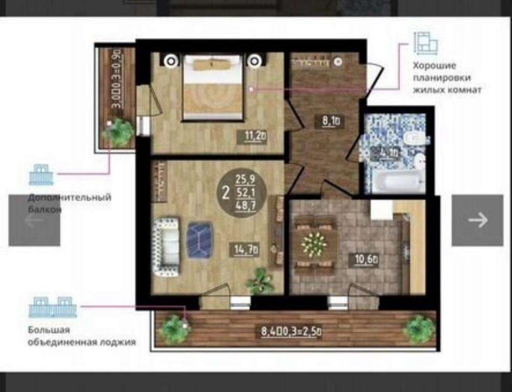 Продажа 2-комнатной квартиры, п Новая Адыгея, Бжегокайская ул, Д.90/3 к.3, республика Адыгея