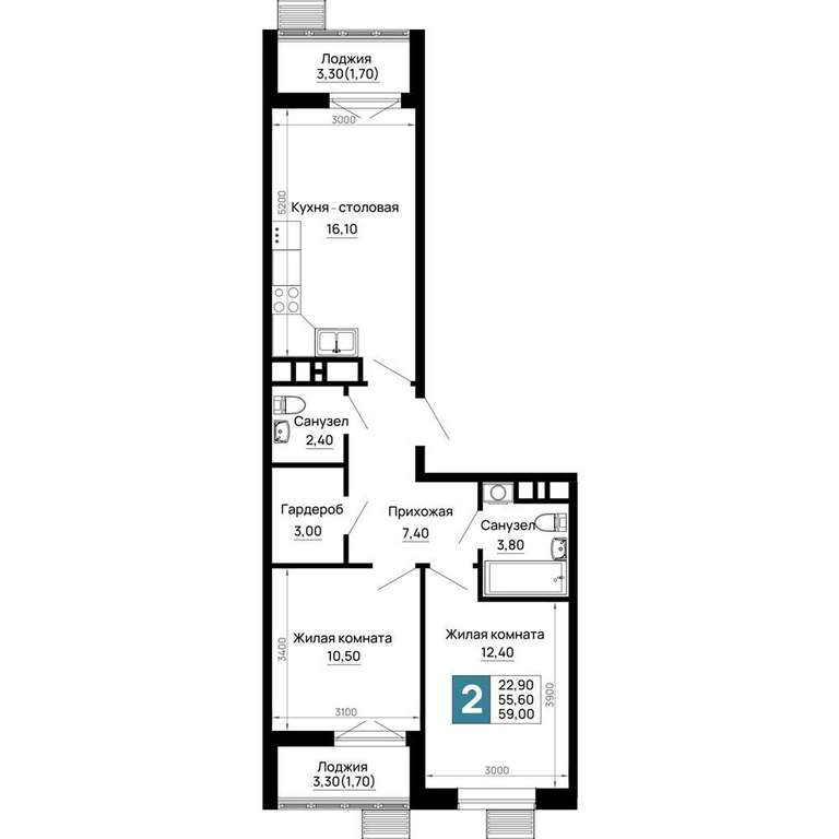 - 59.00 м2