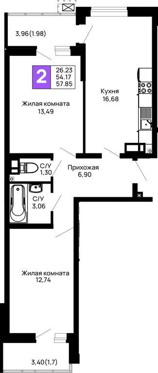 Продается 2-комн. квартира, площадью 57.85 м2 в монолитно-кирпичной новостройке. Возможен вариант покупки с использованием ипотечных средств, возможна покупка с использованием материнского капитала.