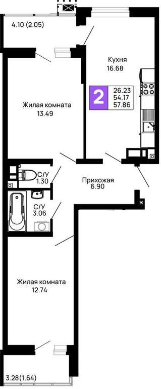 Продается 2-комн. квартира, площадью 57.86 м2 в монолитно-кирпичной новостройке. Возможен вариант покупки с использованием ипотечных средств, возможна покупка с использованием материнского капитала.