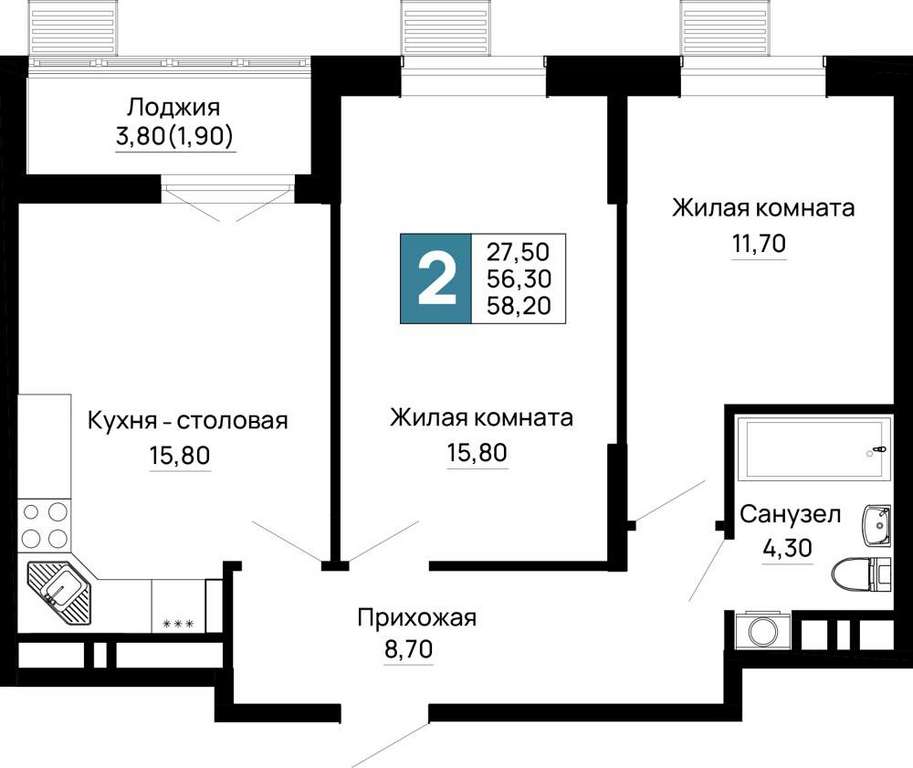- 58.20 м2