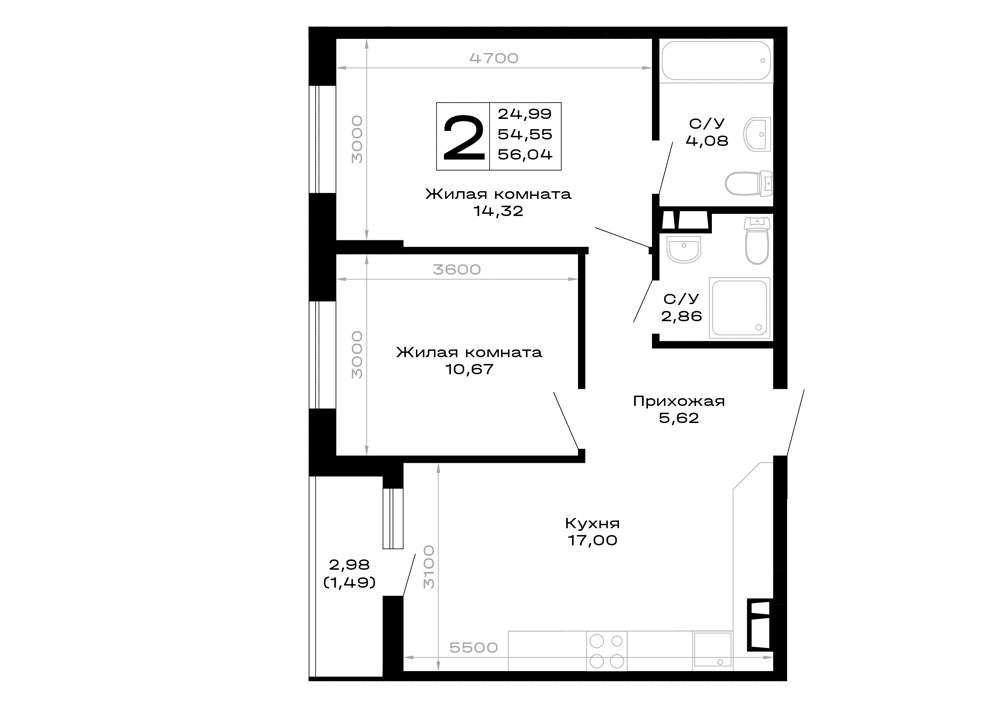 - 56.04 м2
