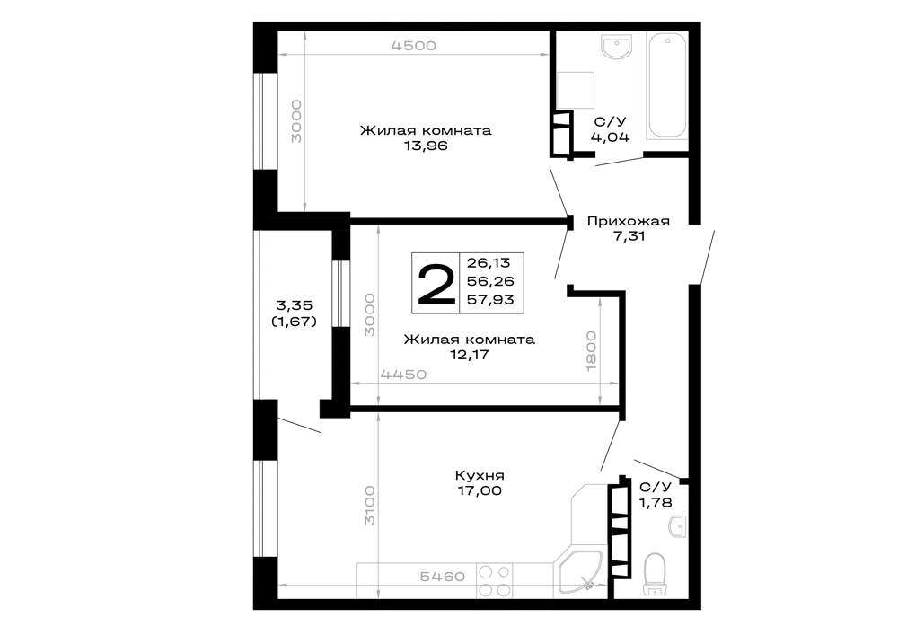 - 57.93 м2