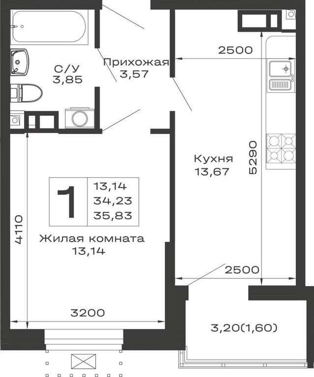 - 35.83 м2