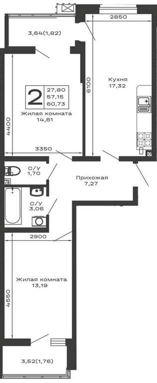 - 60.73 м2