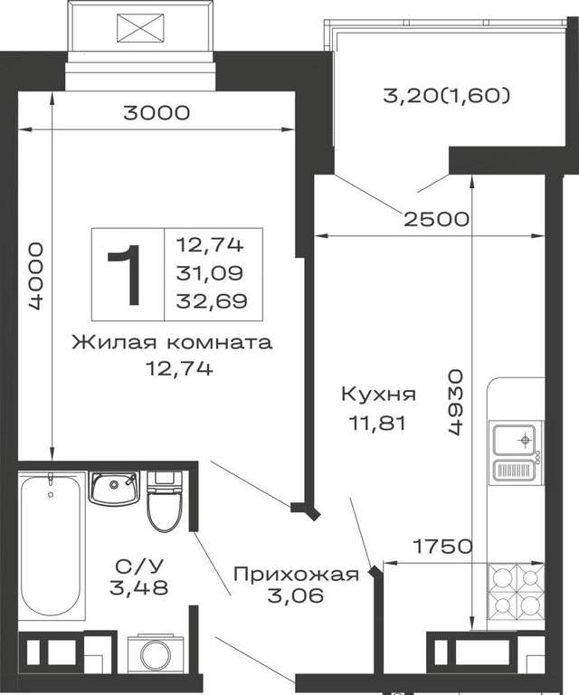 - 32.69 м2