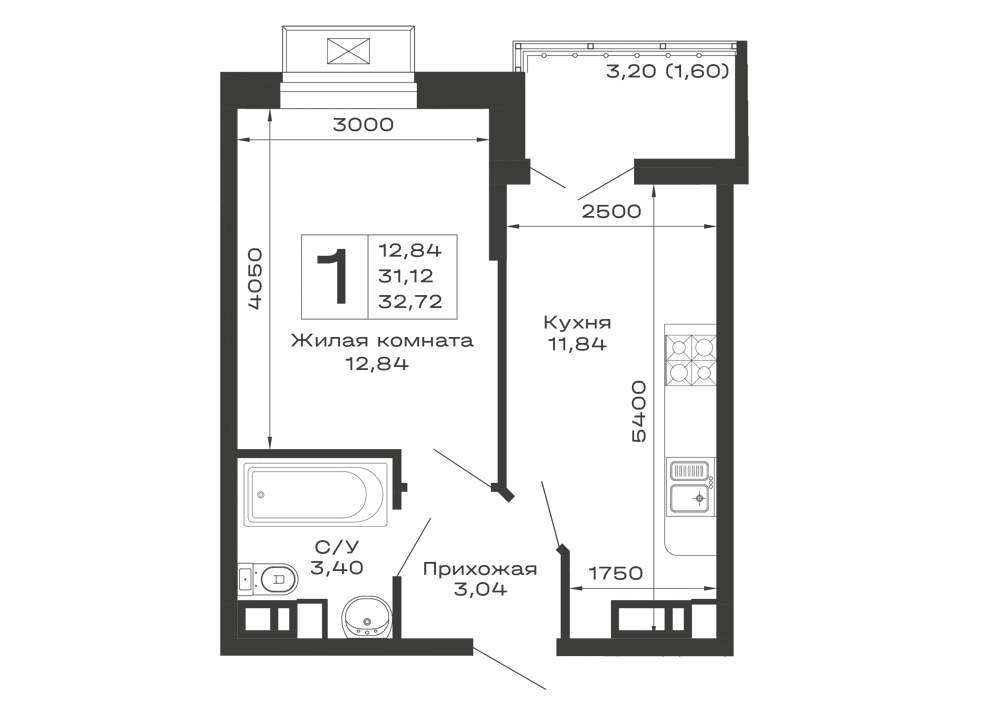 Жилая площадь 12.84 м2, кухня 11.84 м2, предчистовая отделка, комнаты изолированные.